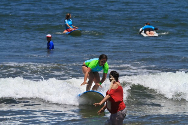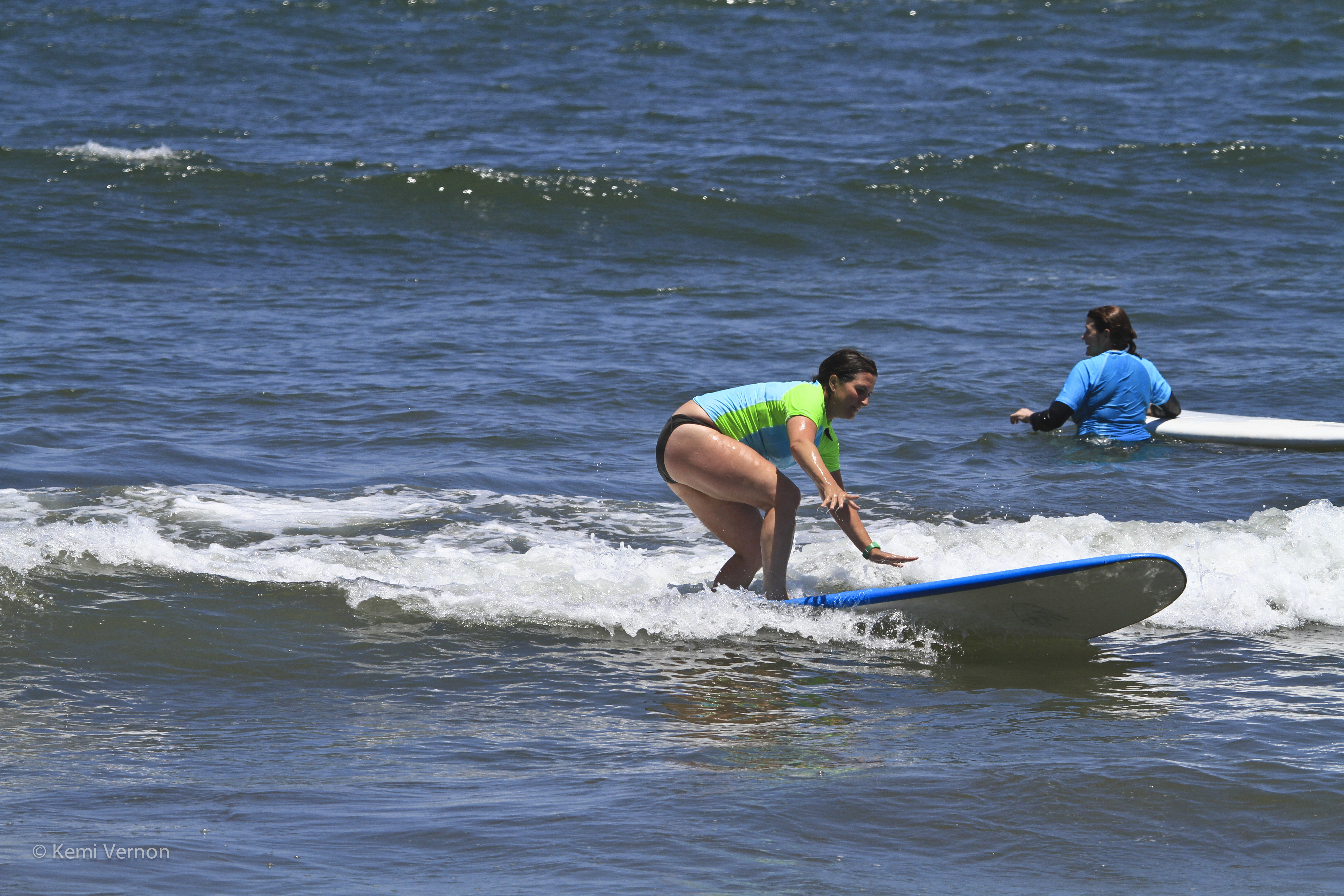 I consider it (sort of) a blessing that I don’t have any day four, five, or six photos of me surfing so they can exist in my imagination, for better or for worse. I know I stood up prouder and taller. I know I graduated to the fiberglass board, felt more, and started to steer. I learned that to avoid hitting someone in front of you you can’t look at the person. LOOK WHERE YOU WANT TO GO. Wow, what a concept. My gaze shifted from my feet to the ocean to the shore.