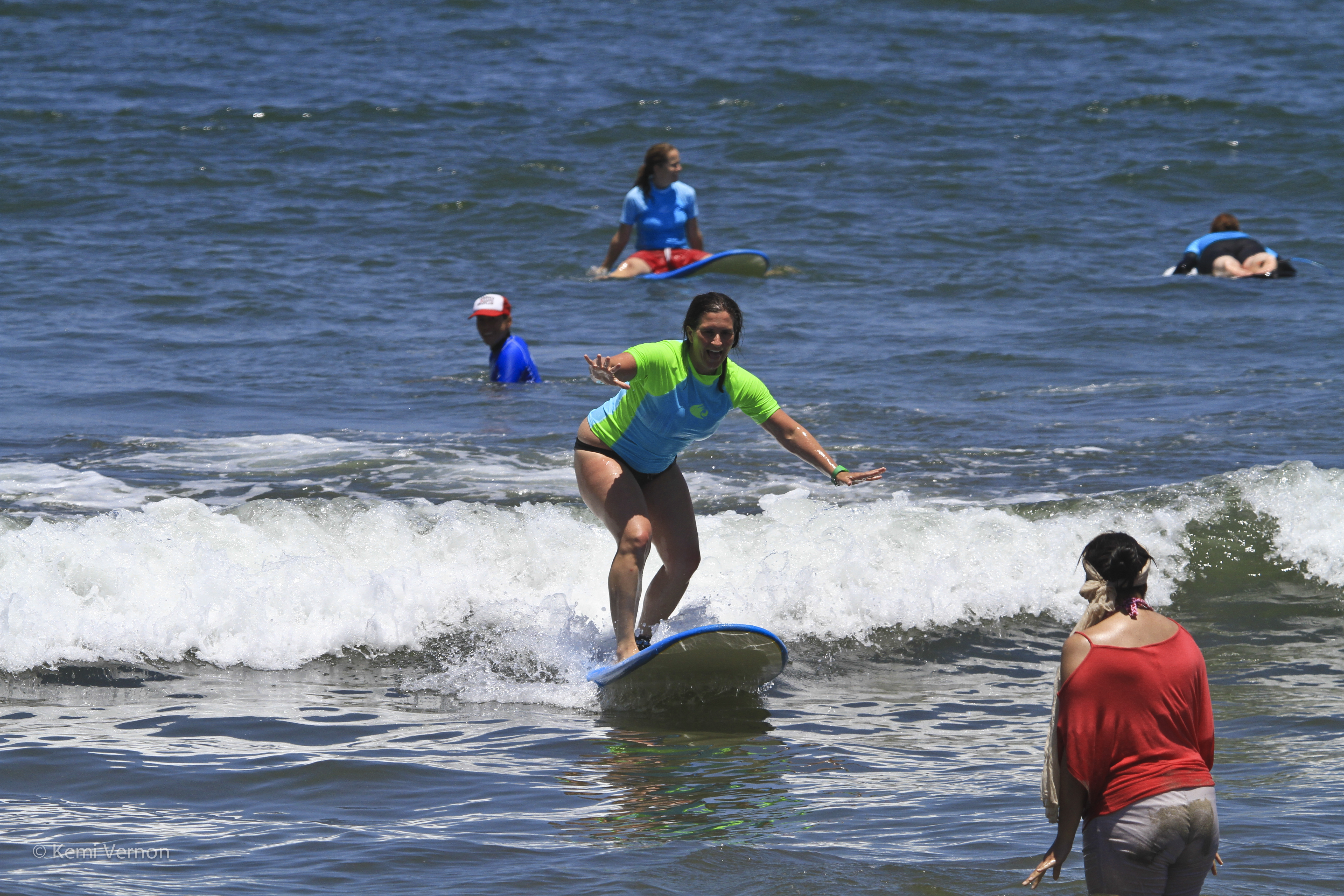 There were some pictures taken of me the first few days of surf camp, but not the last few. In most of my day two and three surfing photos I look like a chick(en) fresh out of the egg seeing the world for the first time. Can I get up? Can I stand? Do I need to bail? Can I do this? Oh. Oh, my goodness. I’m doing this….