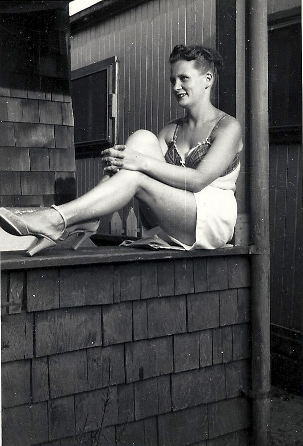 Same outfit, different pose. Mimi on the porch of her mother’s bungalow in Rockaway, Queens.