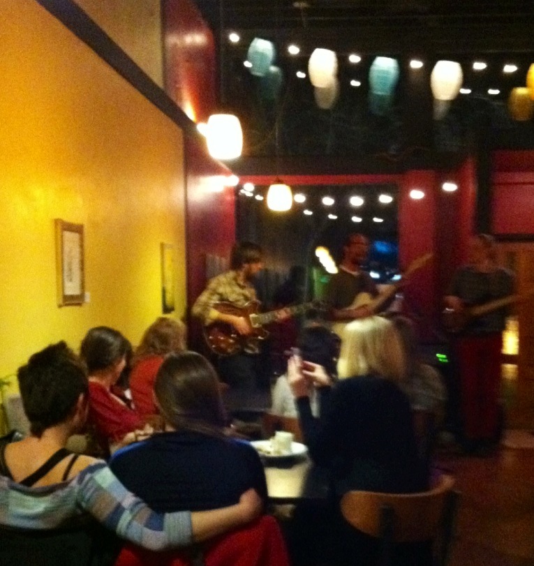 I stumbled upon a packed Asian bistro with a rocking band playing in the front window. What the hell do you think I did? i went in!