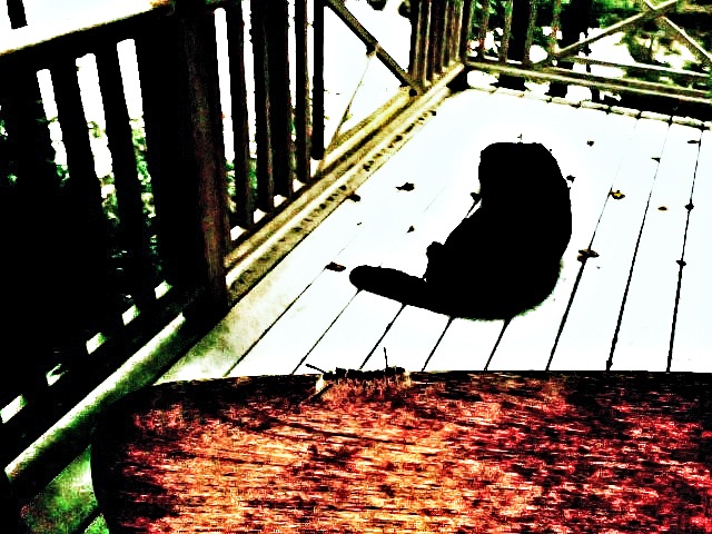 Now, I’m back at the house generously loaned to me for writing, and I’m sitting on the deck. The temperature is still hovering around eighty though the sun is down, and that caterpillar is still giving me the stink eye. I’m starting, again, to think of the potential for disaster.