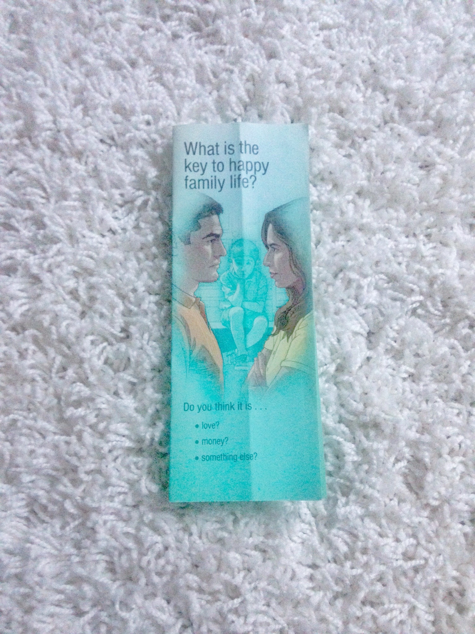 A week after Bob and Donna erased me from their lives, I came home from work to find a Jehovah’s Witness pamphlet stuck inside my door, a pamphlet called “What is the Key to Happy Family Life.”